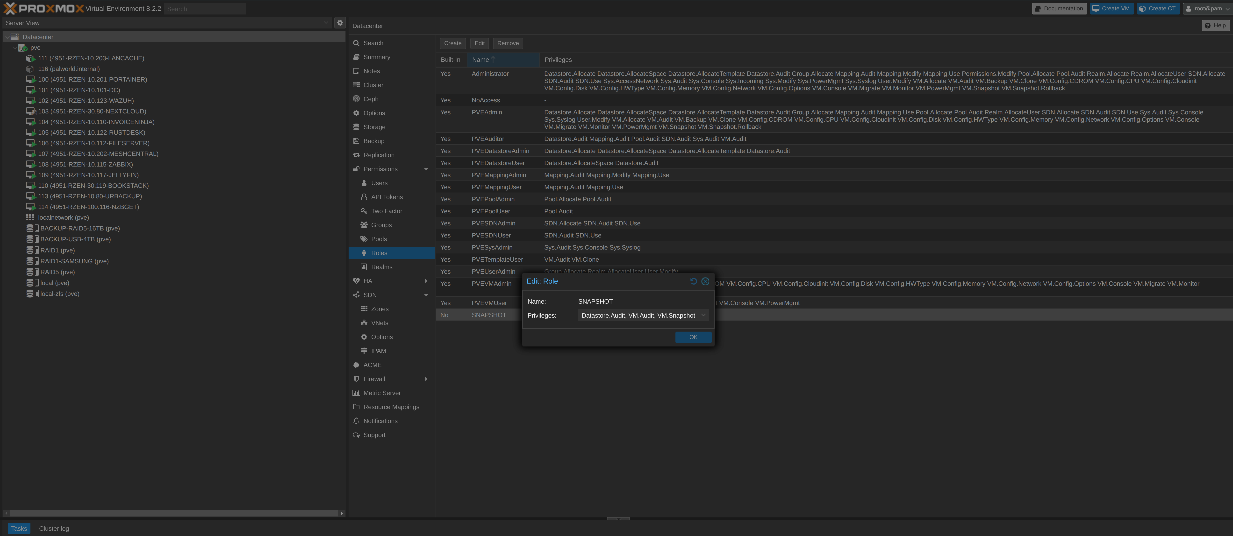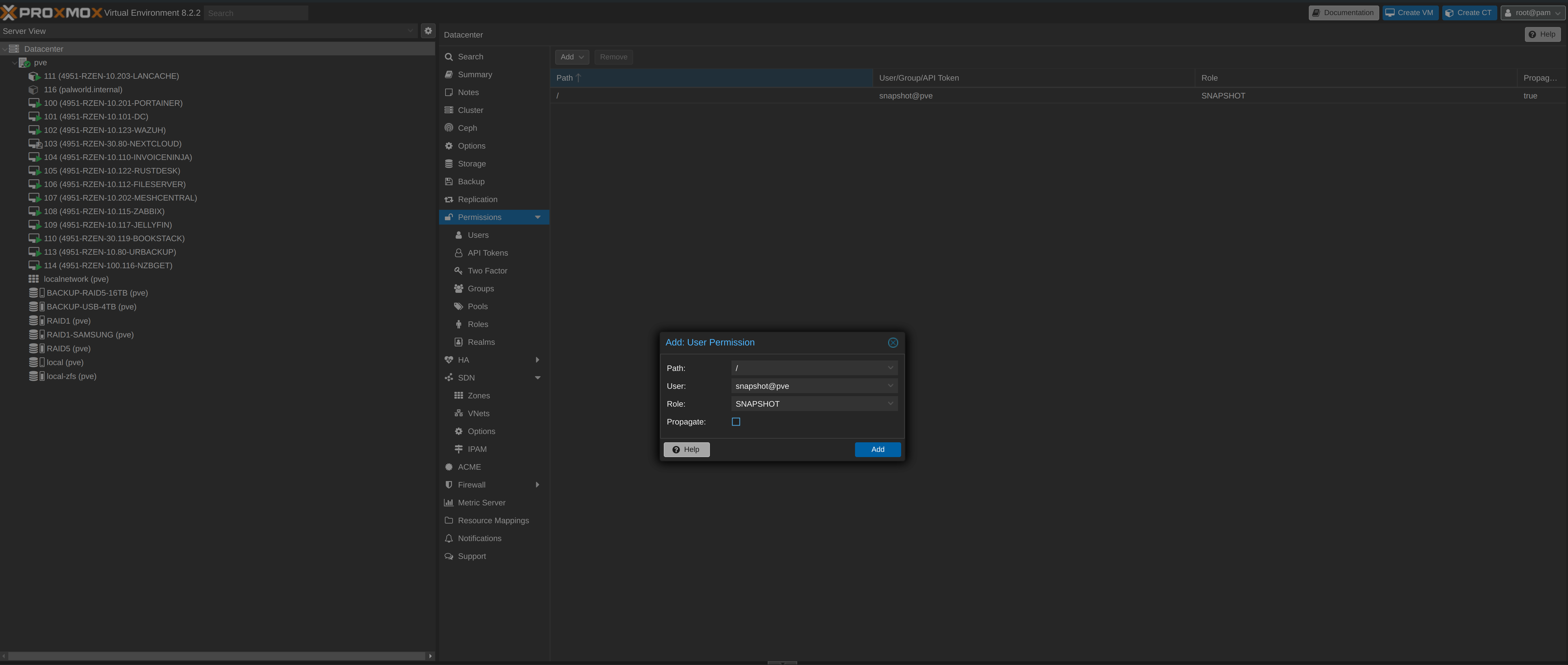 chmod +x /usr/local/bin/cv4pve-autosnapErstellen der Snapshot-Rolle und eines Benutzers: